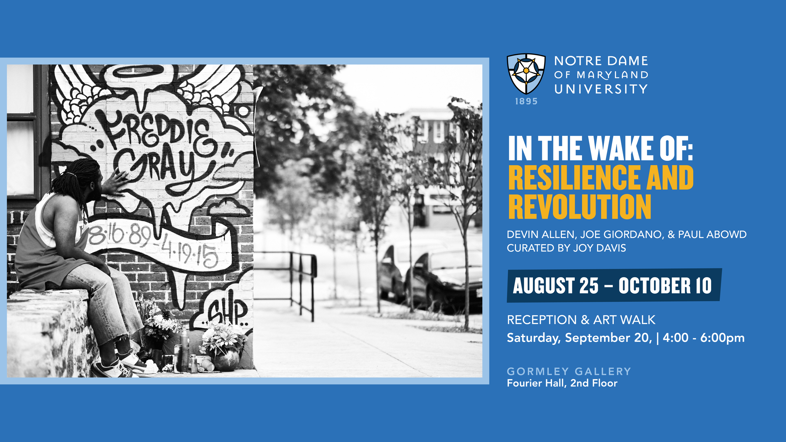 In the Wake of: Resilience and Revolution, examines the intersection of social unrest and artistic expression. This exhibition features the work of Devin Allen, J.M. Giordano, and Paul Abowd whose work captures the raw emotion, tension, and solidarity that defined the 2015 Baltimore Uprising and explores their lasting impact on communities.